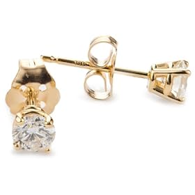 Product FeaturesEditorial ReviewsThe best thing about these diamond earrings is that they can be worn every single day to show them off. Flirty and eye-catching, each round-cut stone rests in a four-prong setting made of 14kt yellow gold. The diamonds have a total carat weight of 1/3 carats. The smooth finish of the metal and the light-reflecting cut of the gems make the pair immediately noticeable. Posts with friction backs keep the shiny pair securely on the ears. This is an essential accessory that can be worn frequently and with almost anything--it is certain to be a favorite. | |