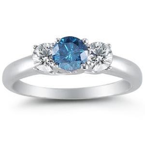 14K White Gold Round 3 Stone Blue Diamond & White Diamond Ring (1/2 cttw) Overview